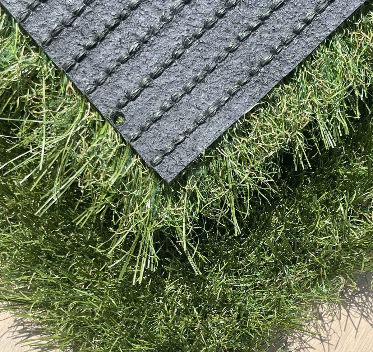 • Strong Foundation and Efficient Drainage: The primary backing is made of 100% PP tapes woven with 10% PP colored fleece, providing excellent stability. The secondary backing consists of a durable SBR latex compound, ensuring strong support. Additionally, the turf features superior water permeability of approximately 16 gallons per minute per square yard, ensuring efficient drainage and preventing water accumulation.